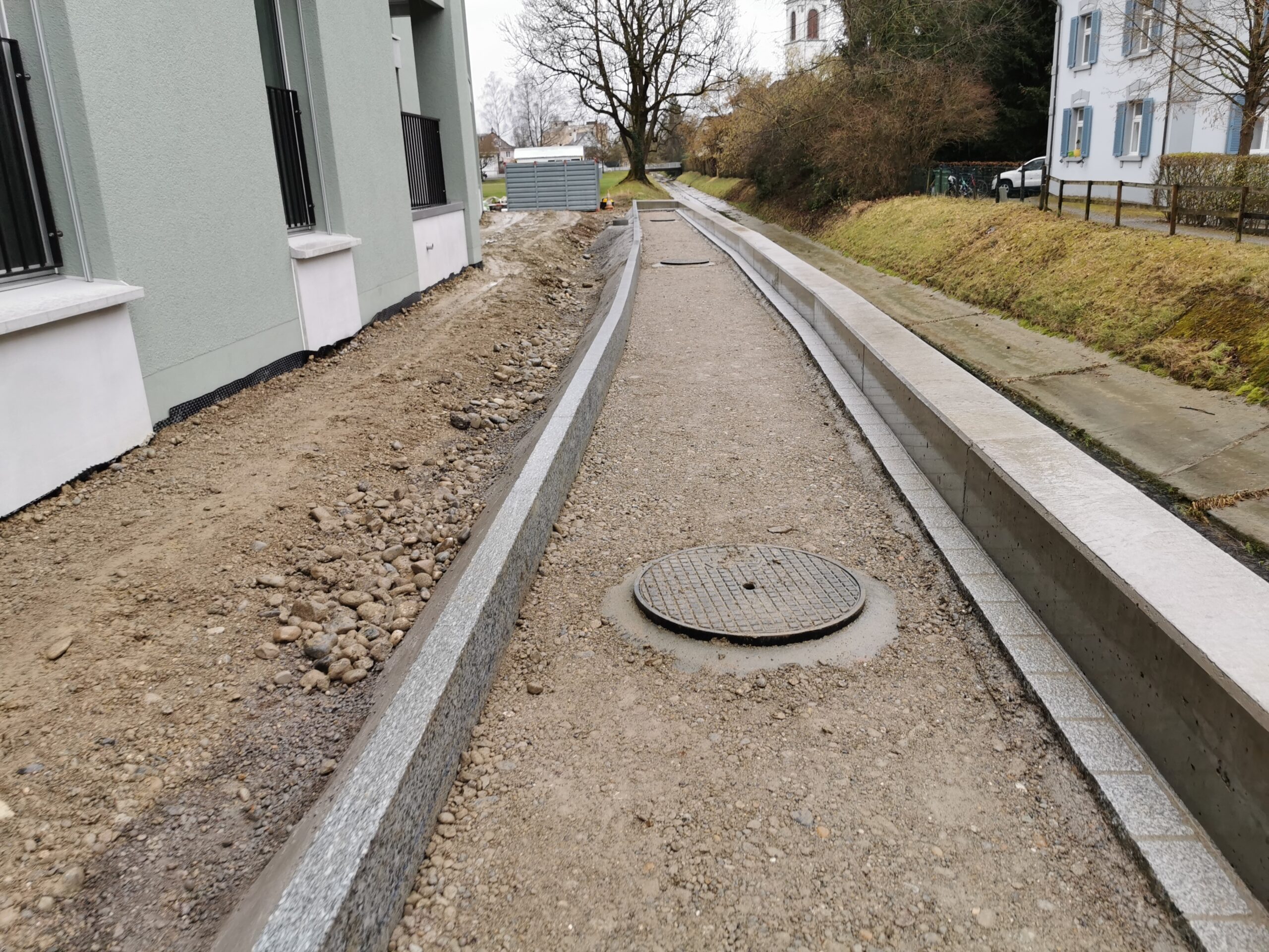 Die Planung umfasste die präzise Abstimmung auf die bestehenden Werkleitungen, die örtlichen räumlichen Gegebenheiten sowie den laufenden Betrieb im Quartier. Das Projekt berücksichtigte sowohl funktionale Anforderungen als auch eine saubere bauliche Integration in das Umfeld. Die Umsetzung erfolgte termingerecht und führte zu einer robusten, gut begehbaren Weganlage, die den Zugang im Quartier nachhaltig verbesserte.